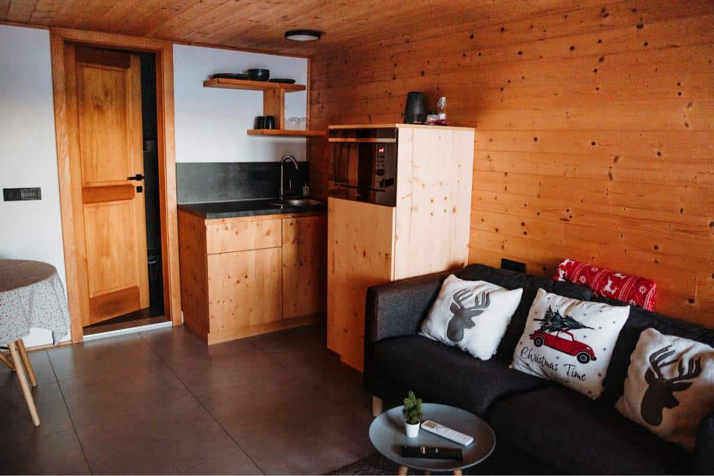 - 🍳 Gourmet Kitchen: Fully equipped with an induction hob, microwave with grill, and everything you need for a forest dinner for two.